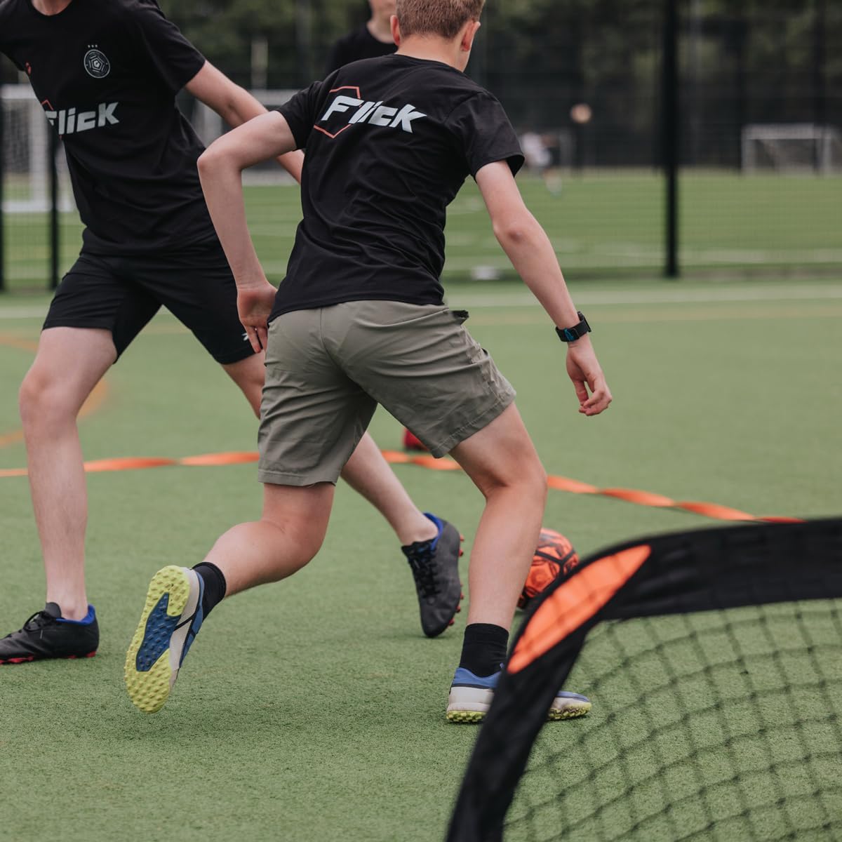 The Football Flick Urban Pitch Pack is a portable football pitch that comes with 2 pop up, lightweight football goals, a pitch marker to create your pitch, carry bag to fold everything away into and pegs to secure everything down. The foldable football goals are an ideal size for 1v1, 2v2 or 3v3 matches. Each pop up goal is made of high quality fibreglass poles that are very easily assembled and disassembled. The Urban Pitch pack can be used on any surface making it ideal for the garden, pitch or even beach. The Urban Pitch Pack is ideal for kids and grown ups of all abilities who want to improve their football training or just have lots of fun.