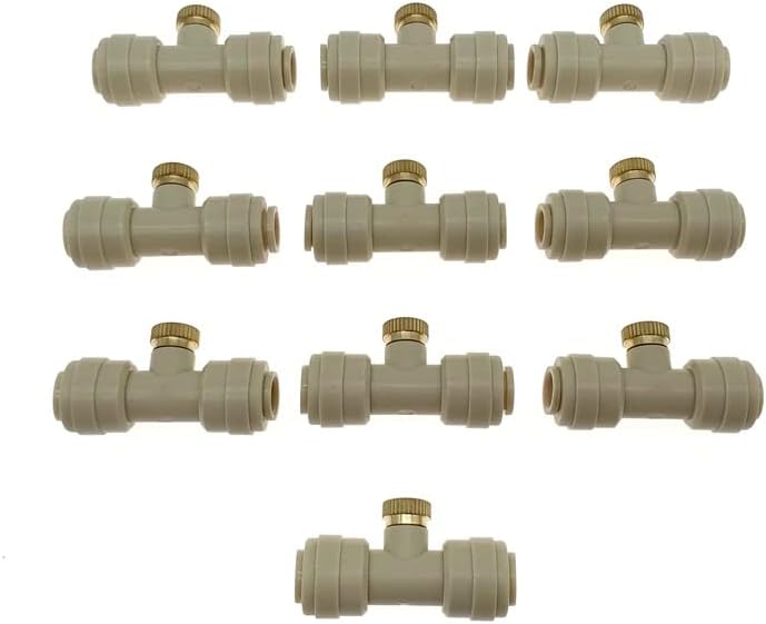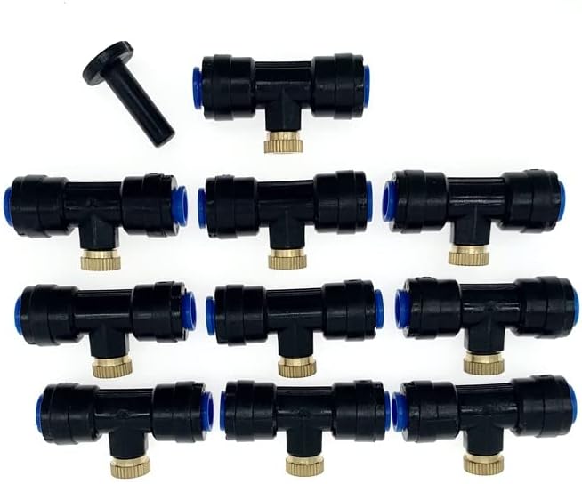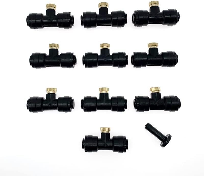 Package Contents:10 x Slip-Lok Misting Nozzle Tees10 x Nozzles1 x PlugDescribeLow Pressure Mist Nozzle seat; For outdoor use with cold water only;Food grade material ;Can work under normal pressure(2-3kg);Max. Working Pressure: 30 BAR (450 PSI) ;Slip lock quick pushing,fit for 1/4 inch misting hoseHard water,lime and calcium may clog the fogger nozzles,Clean nozzle periodically by soaking them in vinegarBest clogged mister nozzles replacement for DIY homemade low pressure greenhouse,umbrella,patio mister systems,outdoor cooling systemsMaterial:copperSize:4*0.7cmcolour:black or white or beigeDue to manual measurement, please allow for a difference of 1-3 centimeters. Thank you for your understanding